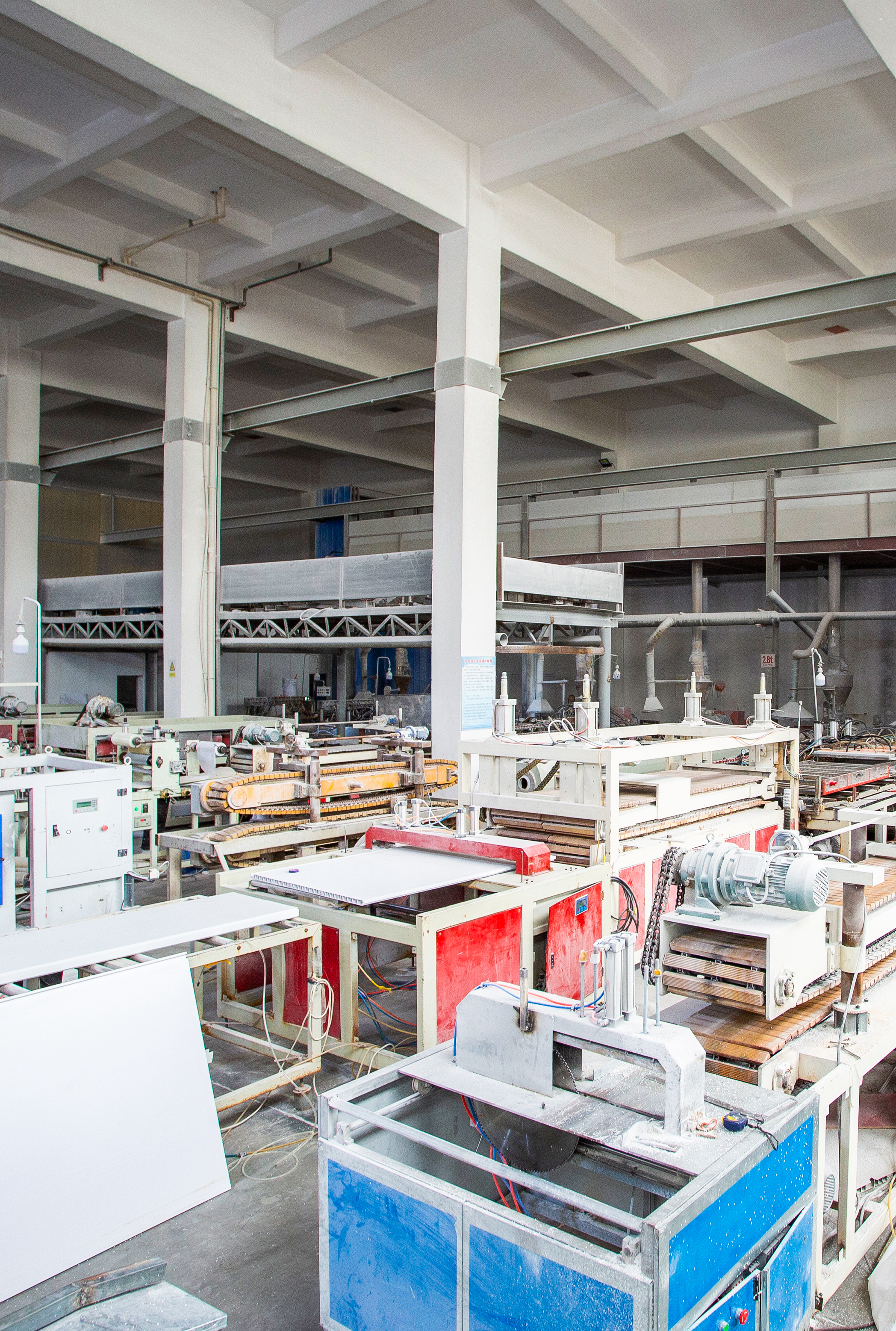 Nhà máy có diện tích 6.000 mét vuông và được trang bị 32 dây chuyền ép đùn hoàn toàn tự động (trong đó có 10 máy đùn 65, 2 máy đùn 80 và 20 máy đùn 51). (bao gồm 10 65 máy đùn, 2 80 máy đùn và 20 51 máy đùn), có thể đáp ứng việc sản xuất PVC, WPC và các vật liệu khác liên tục hiệu quả. Dựa vào sự kết hợp của nhiều mô hình, nó thực hiện hoạt động tích hợp từ trộn, ép đùn, làm mát và tạo hình đến cắt.